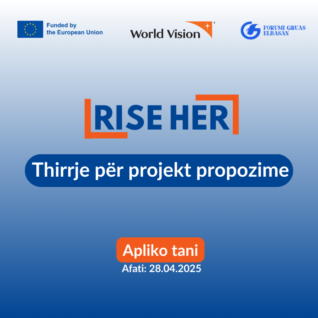 World Vision Albania, together with the Women’s Forum Elbasan, announces the open call for project proposals for civil society organizations in the District of Elbasan, within the framework of the project “RISE HER (Revitalize Independence and Solid Empowerment for Her)” financed from EU funds. We invite civil society organizations in the District of Elbasan to […]