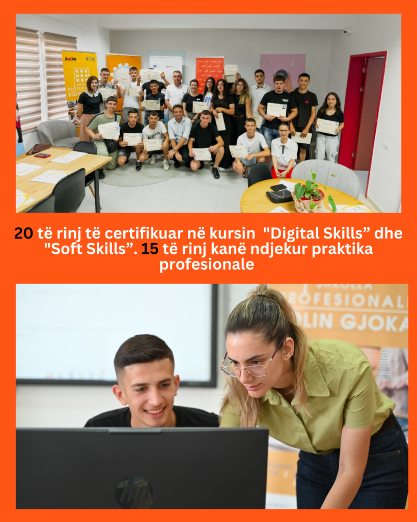 - 20 të rinj janë certifikuar në Digital Skills dhe Soft Skills, duke u pajisur me aftësi të kërkuara nga tregu i punës.